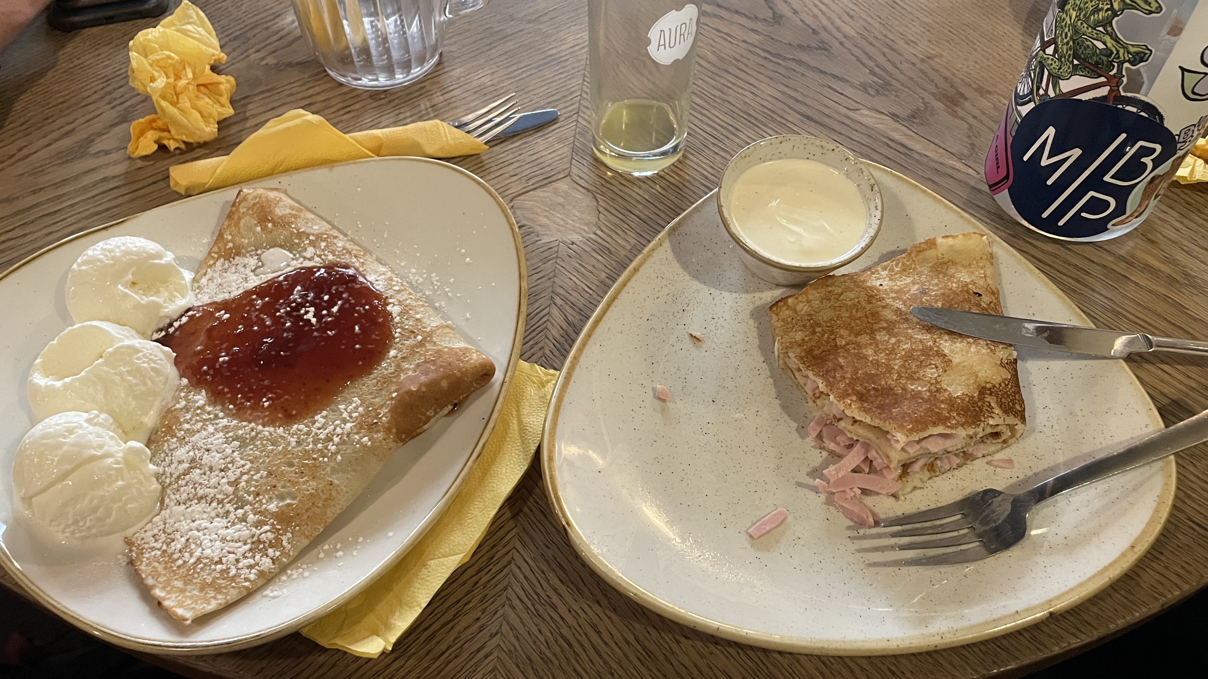 My amazing double-crepe breakfast (yes, that is ice cream on the left)